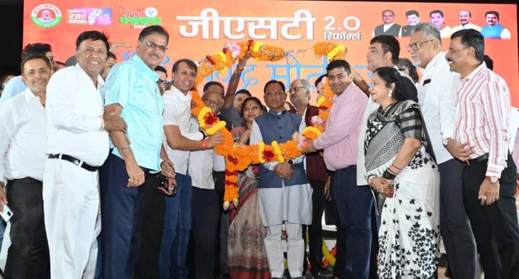रायपुर 28 सितंबर 2025/ मुख्यमंत्री श्री विष्णुदेव साय आज राजधानी रायपुर के मेडिकल कॉलेज सभागार में आयोजित जीएसटी 2.0 रिफॉर्म्स “धन्यवाद मोदी जी” कार्यक्रम में शामिल हुए। मुख्यमंत्री श्री साय ने कहा कि जीएसटी रिफॉर्म्स से आर्थिक क्षेत्र में ऐतिहासिक बदलाव हुए हैं, जिनका सीधा लाभ आम जनता को मिल रहा है। जीएसटी दरों में कटौती से 140 करोड़ देशवासियों के जीवन में खुशी आई है।