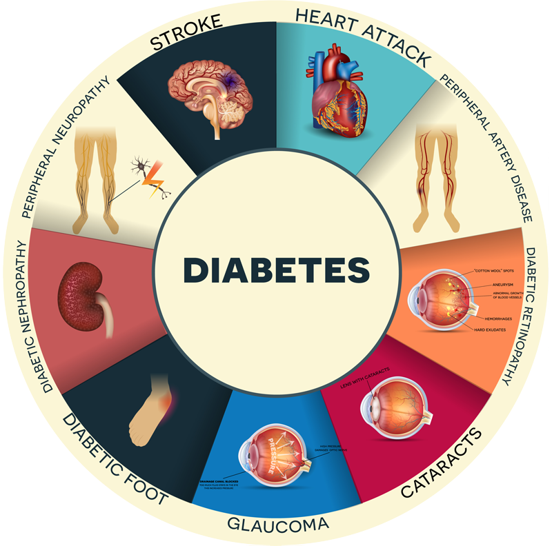 कल्पना करें कि चेरी या रसभरी को चीनी में लपेट दिया गया हो। मधुमेह में सभी रक्त वाहिकाओं के साथ भी यही होता है। रक्त वाहिकाओं की दीवारें पूरी तरह से चीनी से संतृप्त हो जाती हैं और नाजुक हो जाती हैं। जिसके कारण वाहिकाओं के सिकुड़ने और फैलने की क्षमता समाप्त हो जाती है। पहले पतली वाहिकाएं नष्ट होती हैं, फिर मध्यम आकार की और फिर बड़ी वाहिकाएं। ये वाहिकाएं आंतरिक अंगों को पोषण देती हैं। रक्त की आपूर्ति में कमी के कारण दीर्घकालिक रोग शुरू हो जाते हैं।