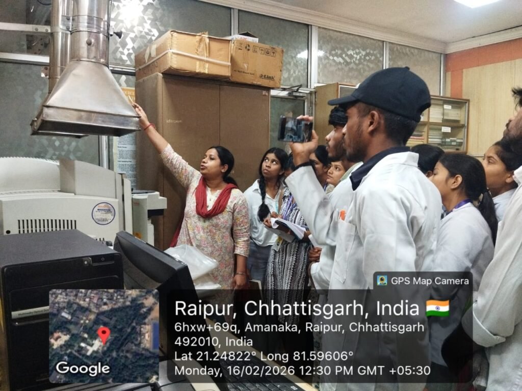 रायपुर, 18 फरवरी 2026 शासकीय जे. योगानंदम् छत्तीसगढ़ महाविद्यालय, रायपुर के एम.एससी. रसायन विज्ञान के विद्यार्थियों ने 16 एवं 18 फरवरी 2026 को दो दिनों में तीन प्रमुख संस्थानों का विस्तृत शैक्षणिक भ्रमण किया। इस शैक्षणिक भ्रमण के अंतर्गत 16 फरवरी को दो संस्थानों तथा 18 फरवरी को एक संस्थान का भ्रमण सफलतापूर्वक संपन्न हुआ। इस प्रकार का अनुभवात्मक भ्रमण विद्यार्थियों के लिए ज्ञानवर्धक होने के साथ-साथ उनके शोध एवं व्यावसायिक कौशल को भी सशक्त करता है।