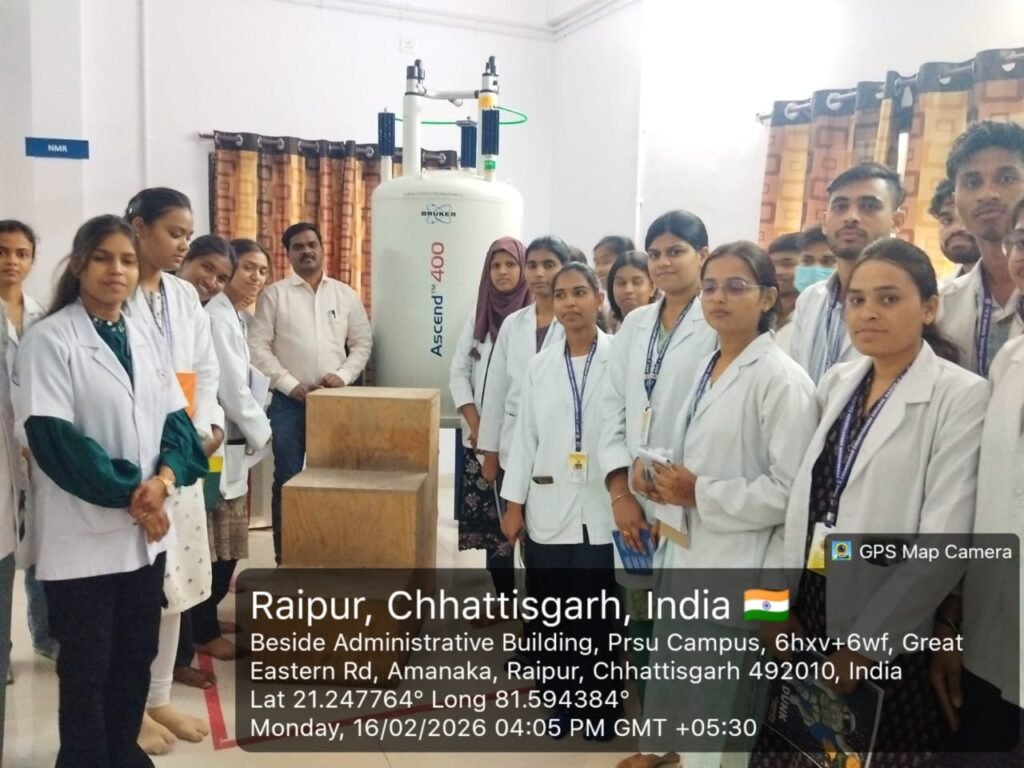 16 फरवरी को विद्यार्थियों ने सर्वप्रथम पंडित रविशंकर शुक्ल विश्वविद्यालय के रसायन शास्त्र विभाग का भ्रमण किया। जहाँ विभागाध्यक्ष डॉ. मानस कांति देब ने उनका आत्मीय स्वागत करते हुए प्रेरक उद्बोधन दिया। उन्होंने कहा कि रसायन विज्ञान केवल प्रयोगशाला तक सीमित विषय नहीं है, बल्कि यह हमारे दैनिक जीवन, औद्योगिक विकास और वैज्ञानिक नवाचार का आधार है। उन्होंने विद्यार्थियों को प्रयोगों के माध्यम से सीखने, अनुसंधान की ओर उन्मुख होने तथा जिज्ञासु दृष्टिकोण विकसित करने के लिए प्रेरित किया। विभागाध्यक्ष ने बताया कि उच्च शिक्षा में सफलता के लिए अनुशासन, सतत अध्ययन और वैज्ञानिक दृष्टिकोण अत्यंत आवश्यक हैं। अंत में उन्होंने विद्यार्थियों के उज्ज्वल भविष्य की कामना करते हुए उन्हें विज्ञान के क्षेत्र में उत्कृष्ट उपलब्धियाँ प्राप्त करने के लिए प्रोत्साहित किया।