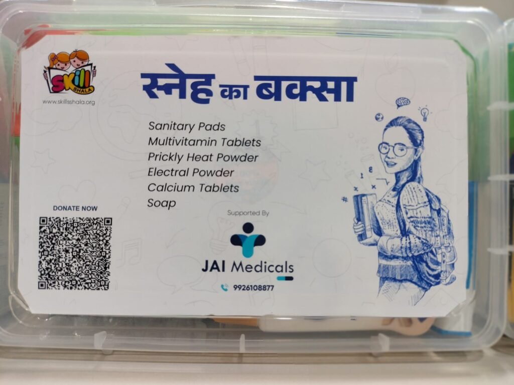 इस पिटारे में बच्चों को मिलती है –पूरे स्कूली सत्र के लिए ज़रूरी स्टेशनरी सामग्री जैसे किताबें, विभिन्न नोटबुक्स, पेन-पेन्सिल, इरेज़र आदि हमारी संस्था का एक और अनूठा प्रयास है : “स्नेह का बक्सा”। कौस्तुभ शर्मा बताते हैं कि हर साल लगभग 2.3 करोड़ किशोरियाँ हर वर्ष मासिक धर्म स्वच्छता प्रबंधन की कमी के कारण स्कूल छोड़ देती हैं , शिक्षा में अवरोध के इस सामाजिक अभिशाप को वरदान में बदलने के लिए हमने शुरू किया – “स्नेह का बक्सा”।