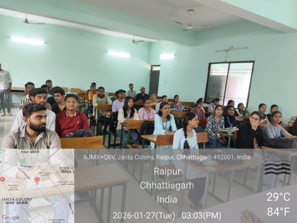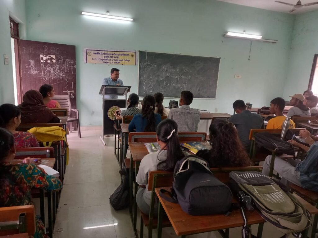 रायपुर, 02.02.2026 शासकीय जे. योगानंदम छत्तीसगढ़ महाविद्यालय, रायपुर में महाविद्यालयीन प्रतियोगी परीक्षा मार्गदर्शन समिति के तत्वावधान में आयोजित कार्यशाला की श्रृंखला में विद्यार्थियों के सर्वांगीण विकास के लिए ’’समय एवं तनाव प्रबंधन’’ विषय पर एक विशेष व्याख्यान का आयोजन किया गया। कार्यक्रम की संयोजक ’’डॉ. मोना जैन’’ ने बताया कि इस व्याख्यान हेतु रसायन शास्त्र विभागाध्यक्ष डॉ. गोवर्धन व्यास को मुख्य वक्ता के रुप में आमंत्रित किया गया था।