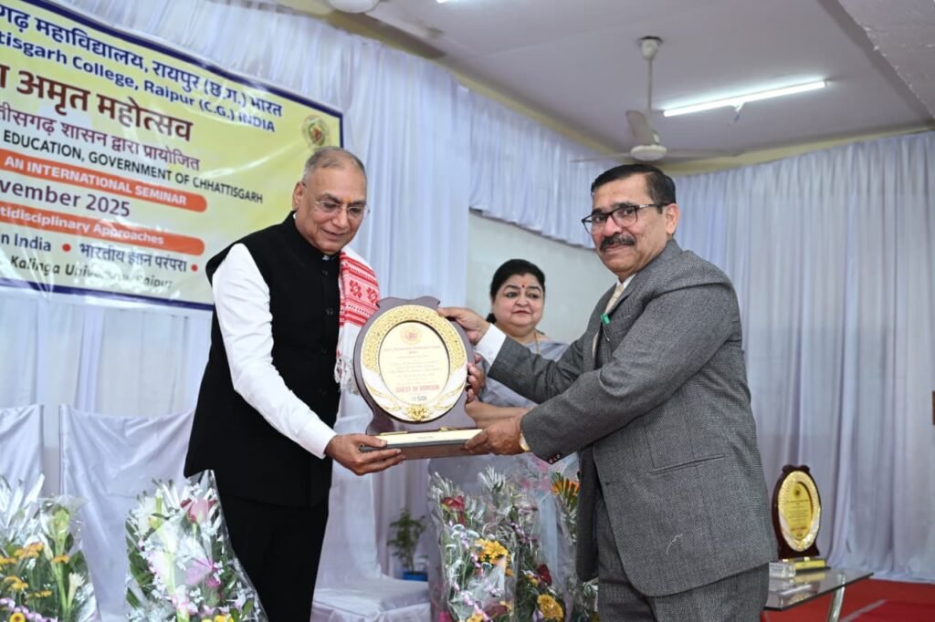 रायपुर। शासकीय जे. योगानंदम छत्तीसगढ़ महाविद्यालय में आयोजित त्रि-दिवसीय अंतरराष्ट्रीय सेमिनार “भारत में लोकतंत्र के 75 वर्ष एवं भारतीय ज्ञान प्रणाली : बहु-विषयी दृष्टिकोण” का आज दिनांक 29 नवम्बर 2025 को समापन हुआ। आयोजन सचिव डॉ. विनीता अग्रवाल ने बताया कि इस अंतरराष्ट्रीय सेमिनार में देश-विदेश से आए विद्वानों, शोधार्थियों, शिक्षकों और विद्यार्थियों की उत्साहपूर्ण सहभागिता रही एवं महाविद्यालय प्राचार्य प्रो. तपेश चंद्र गुप्ता के मार्गदर्शन में पूरा सेमिनार सुव्यवस्थित रूप से सम्पन्न हुआ।