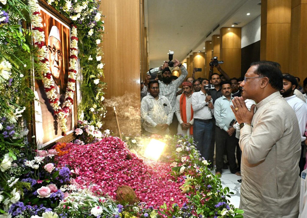 रायपुर, 5 जून 2025/ मुख्यमंत्री श्री विष्णु देव साय आज शाम सांसद श्री बृजमोहन अग्रवाल के पिताजी स्वर्गीय श्री रामजीलाल अग्रवाल के शांति मिलन कार्यक्रम में शामिल हुए। मुख्यमंत्री श्री साय ने स्वर्गीय श्री रामजीलाल अग्रवाल के चित्र पर पुष्प अर्पित कर उन्हें श्रद्धांजलि दी। उन्होंने सांसद श्री बृजमोहन अग्रवाल और उनके परिवारजनों से मिलकर शोक संवेदना प्रकट की।