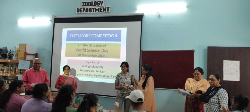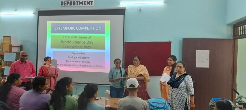 विश्व विज्ञान दिवस का आयोजन शासकीय जे. योगानंदम छत्तीसगढ़ महाविद्यालय रायपुर के जंतु विज्ञान विभाग में दिनांक 10 नवंबर 2025 को विश्व विज्ञान दिवस के उपलक्ष्य में जूलॉजिकल सोसायटी के द्वारा एक कार्यक्रम का आयोजन किया गया